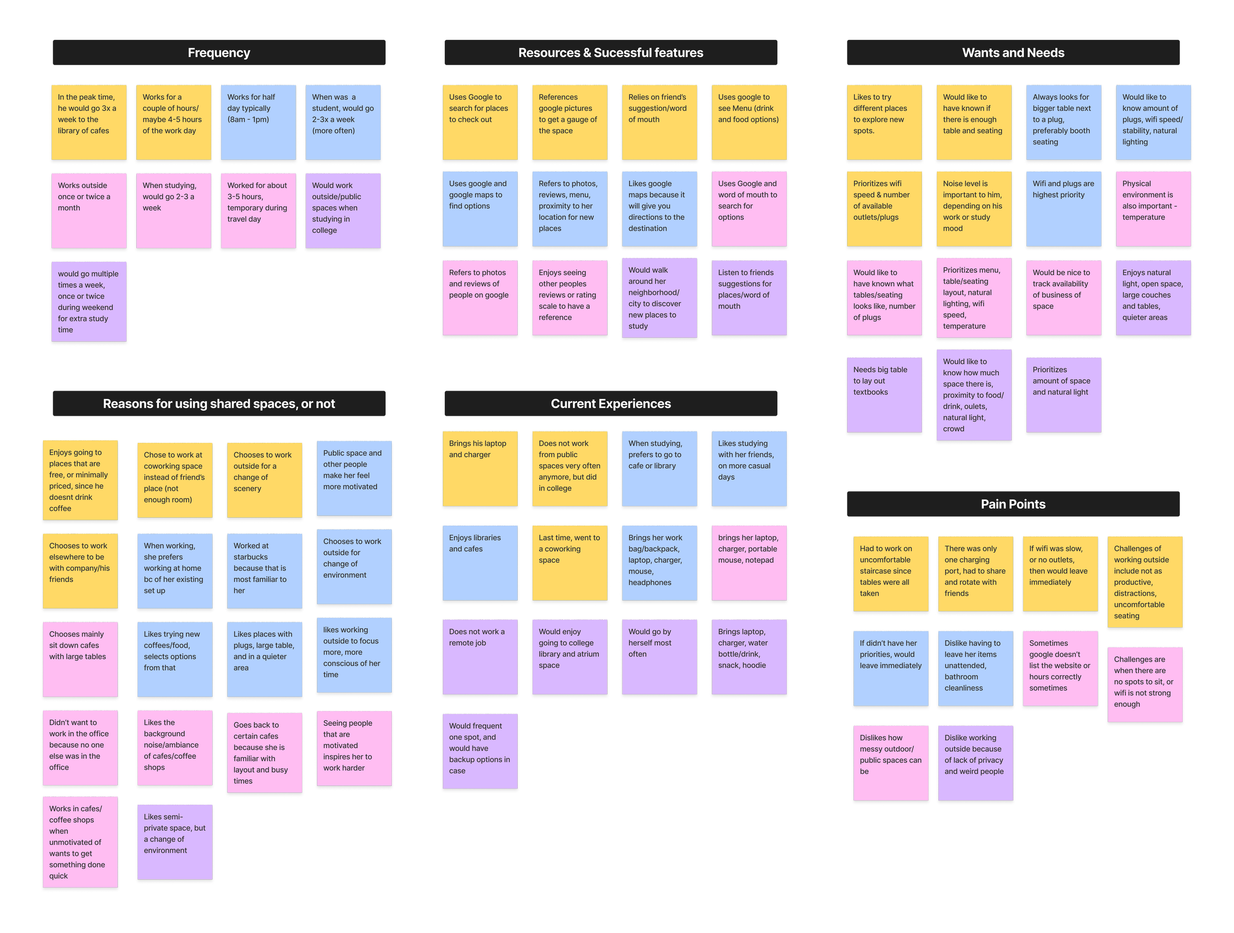 An Affinity Map was created to identify the patterns amount the interviewees. Click on the image above to take a deeper look into the Affinity Map, or view the FigJam link here.