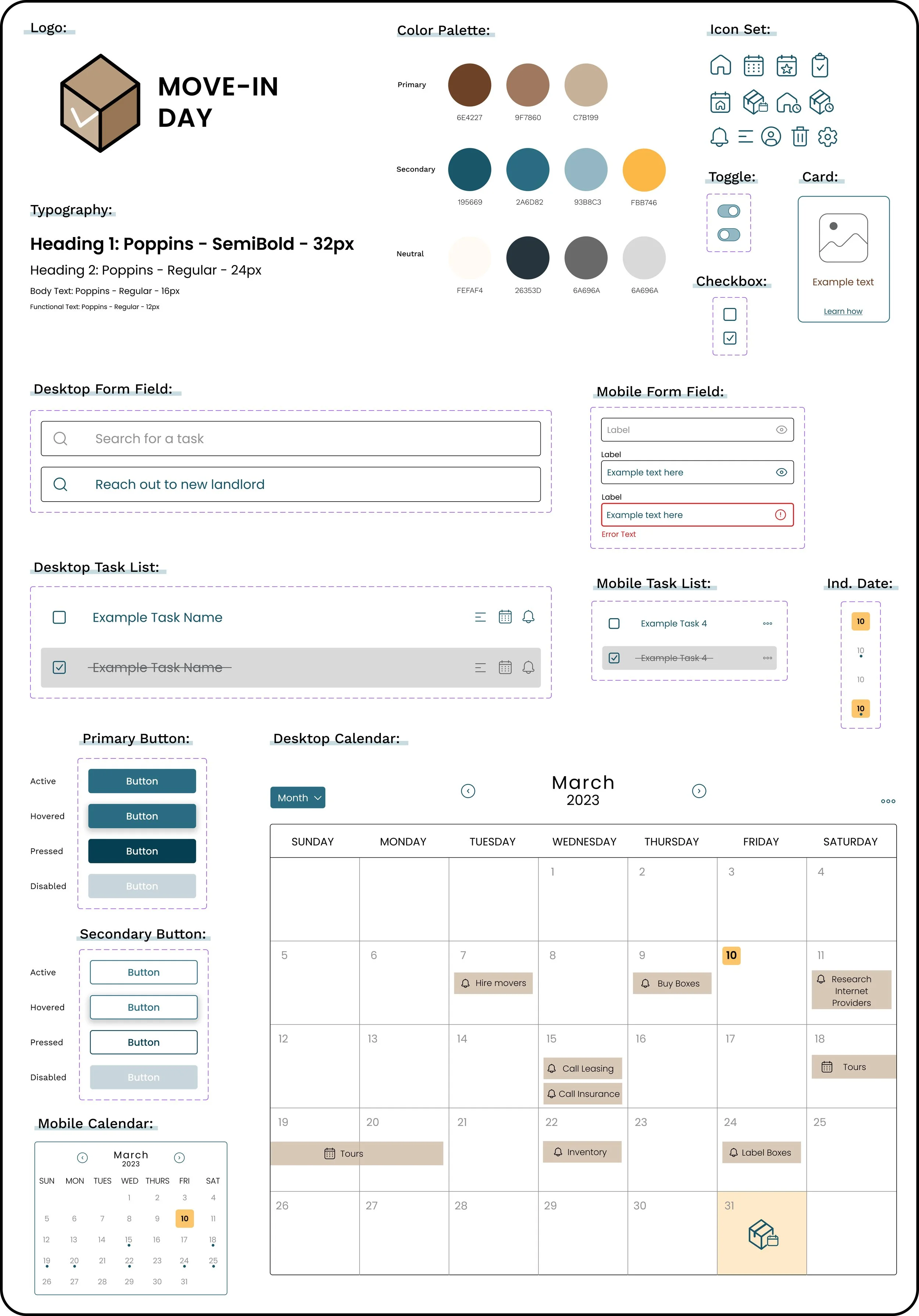 Before creating Move-In Day’s high fidelity wireframes, we developed a UI component library to streamline the designing process and ensure consistency within the platform’s design.